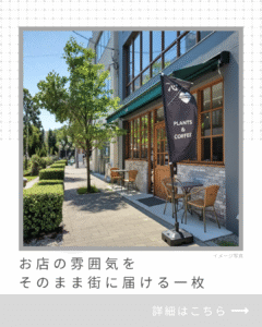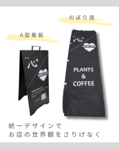 のぼり旗も以前オーダーいただいたA型看板に合わせて制作し、