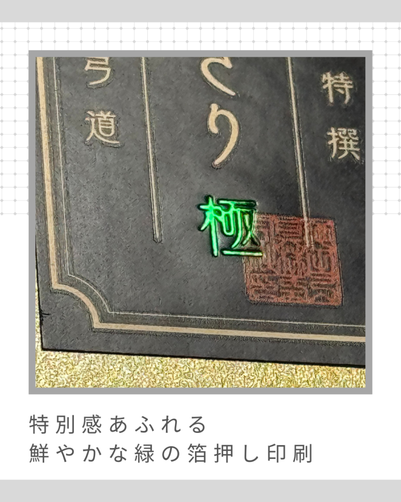 特に注目していただきたいのが、特別仕様の「極」に使用した緑の箔押しです。